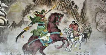 言未毕,一声炮响,两边五百校刀手摆过,大将关羽提青龙刀,跨赤兔马,截住去路。曹军见了,亡魂丧胆,面面相觑。曹操说:“既到此处,只得决一死战!”众将道:“人纵然不怯,马力也己乏,安能复战?”