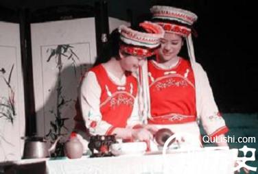 白族的“三道茶”,是云南大理白族招待嘉宾的一种独特的饮茶方式,相传原为古代南诏王招待贵宾的一种饮茶礼,后来流传到民间,经保留和发展延续至今。一苦、二甜、三回味,是三道茶的特点。