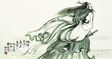 据《史记》“屈原贾生列传”记载,屈原,是春秋时期楚怀王的大臣。他倡导举贤授能,富国强兵,力主联齐抗秦,遭到贵族子兰等人的强烈反对,屈原遭馋去职,被赶出都城,流放到沅、湘流域。他在流放中,写下了忧国忧民的《离骚》、《天问》、《九歌》等不朽诗篇,独具风貌,影响深远(因而,端午节也称诗人节)。公元前278年,秦军攻破楚国京都。屈原眼看自己的祖国被侵略,心如刀割,但是始终不忍舍弃自己的祖国,于五月五日,在写下了绝笔作《怀沙》之后,抱石投汨罗江身死,以自己的生命谱写了一曲壮丽的爱国主义乐章。