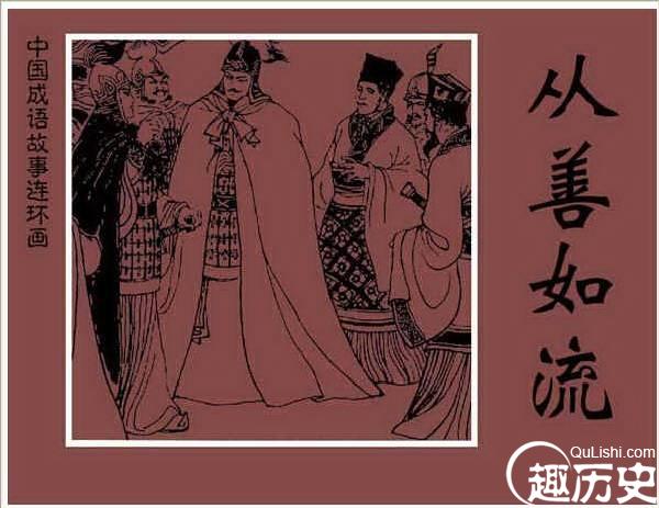 成语今说:从善如流,听从高明正确的意见和建议就像水从高处流下来一样顺畅。形容乐于接受别人提出的正确意见。成语接龙出自《左传·成公八年》:“君子曰:从善如流,宜哉。”春秋时期,诸侯林立,其中郑国是个小国,夹在楚、晋两个大国之间。郑悼公时,郑国同北方以晋国为首的其他各国签订了盟约。结盟的第二年,南方的楚国就来攻伐郑国。晋国便派栾书为元帅,率领大军,前去援助郑国,两军在绕角(今河南鲁山县东南)遭遇。楚军不敢同晋军对敌,便撤退而回。但晋军并不撤走,还准备趁机侵入楚国的蔡地(今河南上蔡县一带)。楚国得了这个消息,就立刻调动近申、息二地的精锐部队,准备迎击。