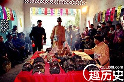 请神灵享受供品。供:猪肉、猪头、尾、内脏及鸡、鸭、酒等12荤熟“浊筵”。