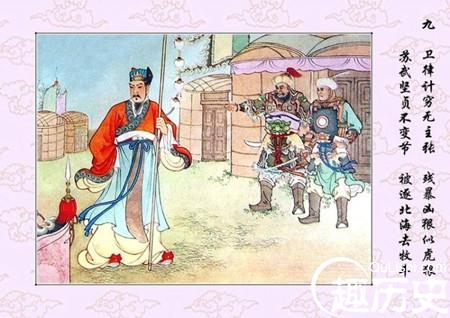 苏武指着卫律的鼻子,骂道:“卫律!你忘恩负义,背叛朝廷,厚颜无耻地投降敌人做了汉奸,我为什么要跟你见面?我决不会投降,要杀要剐(guǎ)都由你!”