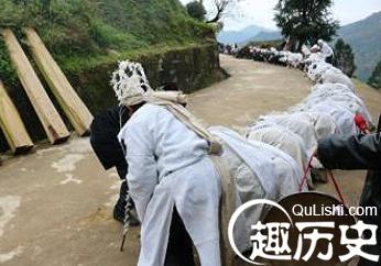 水族人浓厚的祖先崇拜观念,使他们格外注重丧葬仪礼,并在丧葬过程中保留着较为完整的原始信仰习俗。水族的丧葬过程比较复杂繁纷,其主要程序包括报丧、入殓、择吉、安葬、立碑、除服用等六个阶段,其中不少具有水族的民族特点。