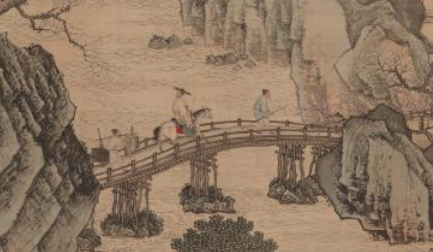 南京博物院收藏的周臣代表作《柴门送别图》 ,描绘一文人携琴访友后,主客分别时依依不舍的情景,明月早已挂在高空,船工也已在船头熟睡,直至客人快要上船了,他还未酲来,说明主客送别时间之长,友谊之深,这其中也融含周臣画体的“院体画”与“文人画”的相融之处。周臣被人们称为非院派的“院派”画家。