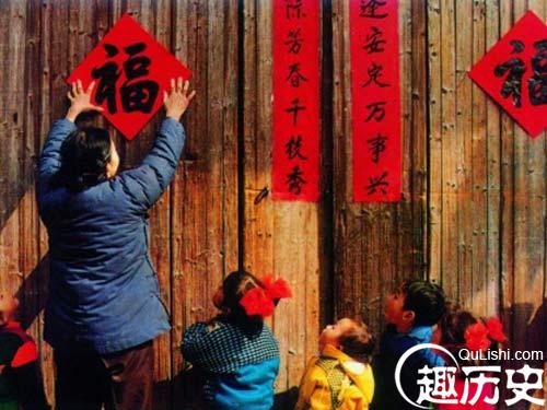 据说贴春联的习俗,大约始于一千多年前的后蜀时期。据说五代时的后蜀国国君孟昶是个喜欢标新立异的国君,在公元964年岁尾的除夕,他突发奇想,让他手下的一个叫辛寅逊的学士,在桃木板上写了两句话,作为桃符挂在他的住室的门框上。这两句话是“新年纳余庆,嘉节号长春”。上一句的大意是:新年享受着先代的遗泽。下一句的大意是:佳节预示着春意常在。由此开始,桃符的形式和内容都发生了变化,这不仅表现在开始用骈体联语来替代“神荼”、“郁垒”,而且还扩展了桃符的内涵,不只是避邪驱灾,还增加了祈福、祝愿的内容。这就成了我国最早的一副春联。