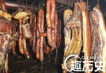 腊肉:羌人大多居住在高半山,交通闭塞,购物不便,因而各种食物以耐储藏为要。长久以来形成了羌寨腊肉的特色食品,每到腊月才宰猪,腊肉以此得名。制作方法是:在高半山由于气候原因大多都不放盐,把头、蹄、排骨剔开,分别挂于火塘上熏干即成。