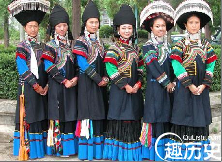 据考古发现,云南晋宁石寨山西汉时代滇王墓出土的贮贝器上就发现此种头饰打扮的人物造型。可见,扎“英雄结”是相当古朴的传统。另外身上斜挎用细牛筋编织而成的佩带(古时用于挂系战刀)称之为“英雄带”;有的左耳戴蜜蜡彩珠和银耳圈等饰物,下装为长裤,但因地域不同而有大、中、小裤脚之分。未婚姑娘戴各式头帕,育后妇女戴帽,或缠头帕,皆为黑色;妇女双耳皆佩金、银、珊瑚、玉贝等耳饰,垂颈部戴银领牌;下着用多层色布环绕拼接而成的百褶裙,往往长可曳地,上半部适体,下半部多褶,既突出女子体型,又增添几分婀娜姿态。大小凉山山势险峻,气候寒冷,当地彝族群众故用毛毯护身,俗称,“擦尔瓦”。