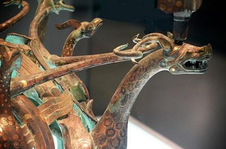 中山国消失了两千多年,却在不起眼的农村重现人间,这在中国考古史上能留下浓墨重彩的一笔。中山国是战国时代鲜虞族所创建的国家,疆域虽小却在历史上扮演过重要的角色,所以这次的考古发现意义重大,出土的文物也能为我们讲述那个时代的鲜虞民族的精彩。中山国墓葬的一大诡异设计就是"库"的存在,但也正是有了库,才使得很多珍贵文物没有被破坏和盗掘。库中出土了大量奇巧瑰丽的文物,有错金银双翼神兽、十五连盏铜灯等珍品,但其中最为惊艳的却是错金银四龙四凤铜方案,一出土就引起了巨大轰动。