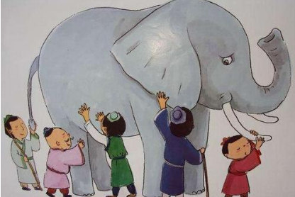 摸到大象肋部的瞎子说:“大象长得像一堵墙。”
