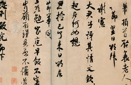 米芾作书十分认真,不像某些人想象的那样,不假思索一挥而就。米芾自己说:“余写《海岱诗》,三四次写,间有一两字好,信书亦一难事”(明范明泰《米襄阳外记》)。一首诗,写了三四次,还只有一两字自己满意,其中的甘苦非个中行家里手不能道,也可见他创作态度的严谨。