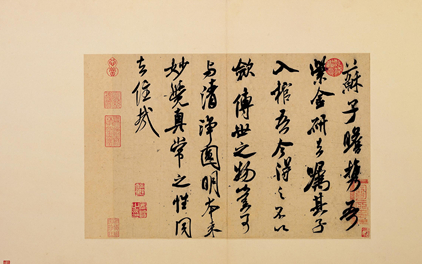 米芾平书法用功最深,成就以行书为最大。南宋以来的著名汇帖中,多数刻其法书,流播之广泛,影响之深远,在“北宋四大书家”中,实可首屈一指。康有为曾说:“唐言结构,宋尚意趣。”意为宋代书法家讲求意趣和个性,而米芾在这方面尤其突出。