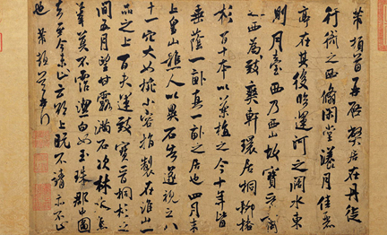 米芾的书法中常有侧倾的体势,欲左先右,欲扬先抑,都是为了增加跌宕跳跃的风姿、骏快飞扬的神气,以几十年集古字的浑厚功底作前提,故而出于天真自然,绝不矫揉造作。