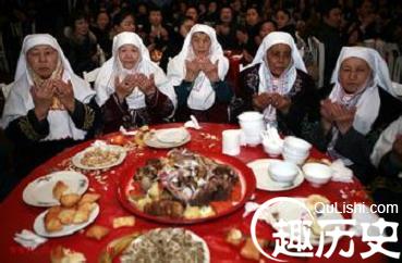 在斋月里,教徒每天黎明之前吃早饭,然后整日不进食,连水都不能喝,只有等太阳落山,叫拜之后才能吃晚饭。也就是说在斋月里教徒每天只在日出前和日落后吃两顿饭。斋戒是教徒必行的“天命”功课,象征着内心负疚的穆斯林向安拉忏悔和赎罪,以此来培养教徒成为能够忍受饥饿、克已禁欲、畏主守法的人。30天封斋结束之后,就是为期三天的肉孜节。