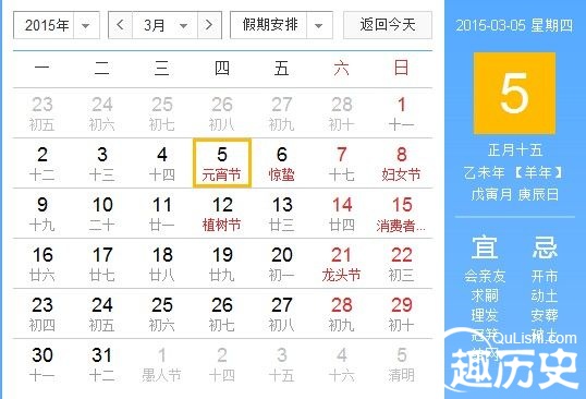 2015年元宵节是几月几号:2015年3月5日(星期四)