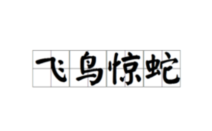 “飞鸟惊蛇”形容字体飘逸像小鸟飞翔,笔势遒劲连蛇也受惊吓。