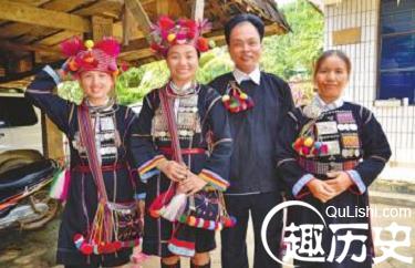 哈尼族布都支系服饰(妇女)用黑色自染布料作上衣,齐膝短裤和绑腿带。包头布端都镶一块精美的刺绣图案,衣服领口处多配有银饰坠,腰束一条长丈余的腰带。