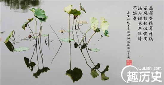 若说冯延巳还离不开花间词风,虽不拘泥形式,但仍处处可见花间之影,那么李璟这首《山花子》却是不见花间之影,完全一幅大家闺秀之风,举止有度,典雅而端凝。也难怪王国维会在《人间词话》中说:南唐中主词”菡萏消香翠叶残,西风愁起绿波间“,大有众芳芜秽,美人迟暮之感。乃古今独赏其“细雨梦回鸡塞远,小楼吹彻玉笙寒”。