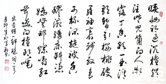 每每读之前,我总在想林花谢了春红,这到底是怎样的一番景象?后来在赵晓岚《林花谢了春红》一书中,终于找到了答案。赵教授说:“这首词的开头是让人触目惊心的,林花不是单纯的只一朵两朵花,而是许许多多的花,大片成林的花,而且这花的颜色是鲜艳的红色。”花开之时,我们可以想象到一番繁花似锦,南唐的盛世时代,只可惜现在林花落了一地,繁华落尽空城,国破山河。这是怎样的一种视觉冲击力啊!从一个皇子,一位帝王,沦为北宋赵匡胤的阶下囚。这一开城门,命运就任人宰割了。若是生命可以从来一次,从嘉还是愿意隐居在他自己心中的澄心堂,做他的钟山隐士。白落梅在《世间所有的相遇都是久别重逢》中说:“人生多戏谑,世事太无常。”六皇子,最不可能做皇帝的人登上了宝座,登基大典更是李煜生命倒计时的开始。于是感叹太匆匆。内忧外患,如同早上的寒雨,晚间的狂风,撕扯着这位柔弱的帝王。城门破,太多女子等着追随后主而去,图书管理员,李煜的红粉知己,黄宝仪,为了不让宋军毁坏,烧了后主所有珍贵的书籍,自己也葬身火海。金陵的寺庙,尼姑们以及躲在庙里的青春貌美的女子们,也一并葬身了大火,随着她们的后主而去。那一刻,金陵俨然成为了一片火海,火光四起,帝王李煜离世了,而词王李煜诞生了。胭脂泪,相留醉,几时重?女子的哭喊声,声声在耳。城门开启,南唐灭亡,北宋从此入主江南,另一个大一统的国家开始,只是后主心中的遗憾正如同那长江水一般,绵延不绝了。