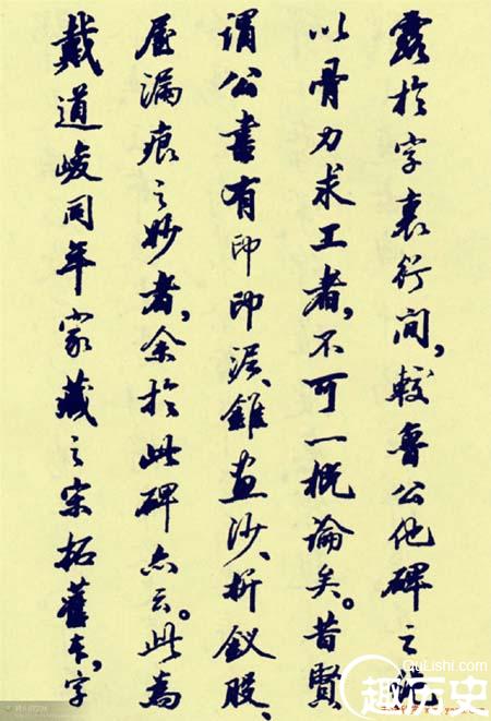 正如张怀瓘《书议》中说“(羲之)得重名者,以真(楷)、行故也”,“因取世人易解,遂取王羲之为标准”(《书估》)。使后来学者,莫不以他的书体为范本。这样在实用书体中,羲之无意中起到了统一中国文字的作用,并一直沿用至今。这一点,是任何书家都无法同他匹敌的。历史造就了这位天才。