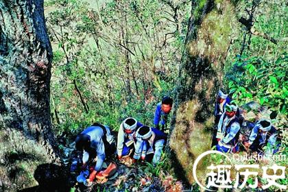 八块是鞋由八块兽皮缝制而成,金龙是指金角老龙王,意在祈望仡佬人穿上“八块金龙”走在山野间,有金角老龙王的眷顾,能够平安顺利。为了感谢他们的大树,自此以后,他们每年都要祭树,把山林中的大树作为神灵来供奉,让有灵的大树永佑仡佬人的平安。