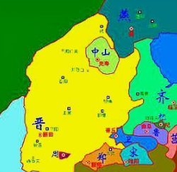 8、三家分晋:公元前633年晋文公作三军设六卿,此后六卿一直把握着晋国的军政大权。到晋平公时,韩、赵、魏、智、范、中行氏六卿相互倾轧。后来赵氏把范、中行氏灭掉后,公元前453年又联合韩﹑魏灭掉了智氏,晋国公室名存实亡。公元前403年周威烈王命韩虔、赵籍﹑魏斯为诸侯。到公元前376年,魏武侯﹑韩哀侯﹑赵敬侯瓜分了晋国王室,一个强大的诸侯国被分成了韩、赵、魏三家。在历史上,“三家分晋”被视为春秋之终、战国之始的分水岭。