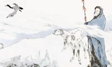 汉武帝天汉元年,匈奴向汉朝求和,于是,汉武帝就派中郎将苏武出使匈奴。苏武接受任务以后,带着使团及丰厚的礼物出发到匈奴。不料,反复无常的匈奴单于不但不感谢,反而受坏人挑唆,把苏武等人扣押起来,要苏武投降。金钱、高官厚禄、冻饿折磨,这些都没能使苏武屈服,他坚决不投降。没办法,单于只好下令将苏武送到北海边上(现在的西伯利亚贝加尔湖一带)去牧羊。并且对苏武说:“等公羊何时生了小羊,就送你回汉朝去!”公羊怎么能生小羊呢?用意十分明白,单于是坚决不放苏武回汉朝了。