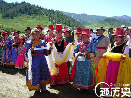 按照裕固族的传统礼俗,老人会在门口把你让进帐篷,安排客人坐在左侧面朝门口的贴地板床上,这是贵宾席。最好按他们的习俗,先用双膝跪坐,然后盘腿坐下。一般是按男左女右分坐。当主人请你用餐时,不要站起来,更不得走动,也无须过谦,尽管吃好了。