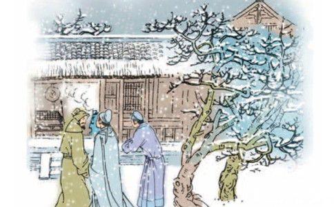 等赶到程颐住处时,程颐先生正在闭目养神。二人觉得不应该打扰大师,于是站在屋外静等先生醒来。等到程颐先生醒来,发现二人正站在雪中,连忙将二人迎进门,此时屋外的雪已经积了一尺多厚了。
