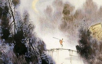 温庭筠的诗与李商隐齐名,并称“温李”。诗风清丽,如《商山早行》,是写羁旅之情的名篇。它通过鲜明的艺术形象,反映旅人的某些共同感受。其中的名句“鸡声茅店月,人迹板桥霜”,把鸡声、茅店、月、人迹、板桥和霜六种意象并列,不用一个动词,非常形象精炼,因而脍炙人口。