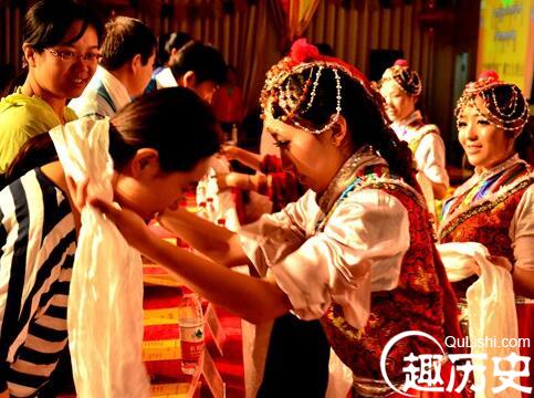 1.调解矛盾敬献哈达:表示愧悔、致歉、谅解,如对方接受了哈达,意思是愿意重归于好,化干戈为玉帛,照常往来。