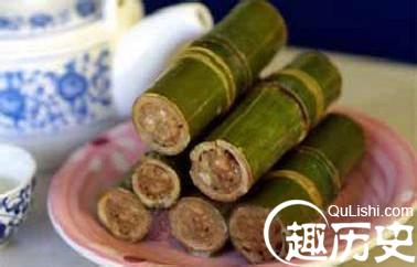 瑶家人往野外耕作或伐木时的午饭。用料:大米,酸咸菜,烤肉等。制作:用刚砍来的新竹,截成一端留节作底的竹筒,用水洗净,然后把充分浸泡的大米和咸菜烤肉等,放入竹筒内,以竹叶或树叶相隔,湿泥封口,放进明火堆煨饭至熟,取出竹筒,劈开,饭软清香,还略带新竹的芬芳。